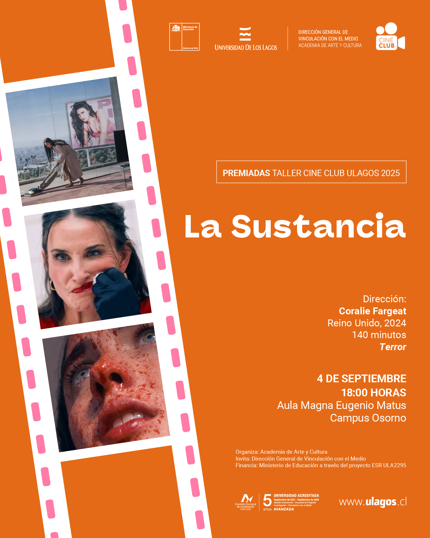 Este septiembre damos inicio al Ciclo de Películas Galardonadas en Festivales con la imperdible «La Sustancia», una obra que no dejará indiferente a nadie.