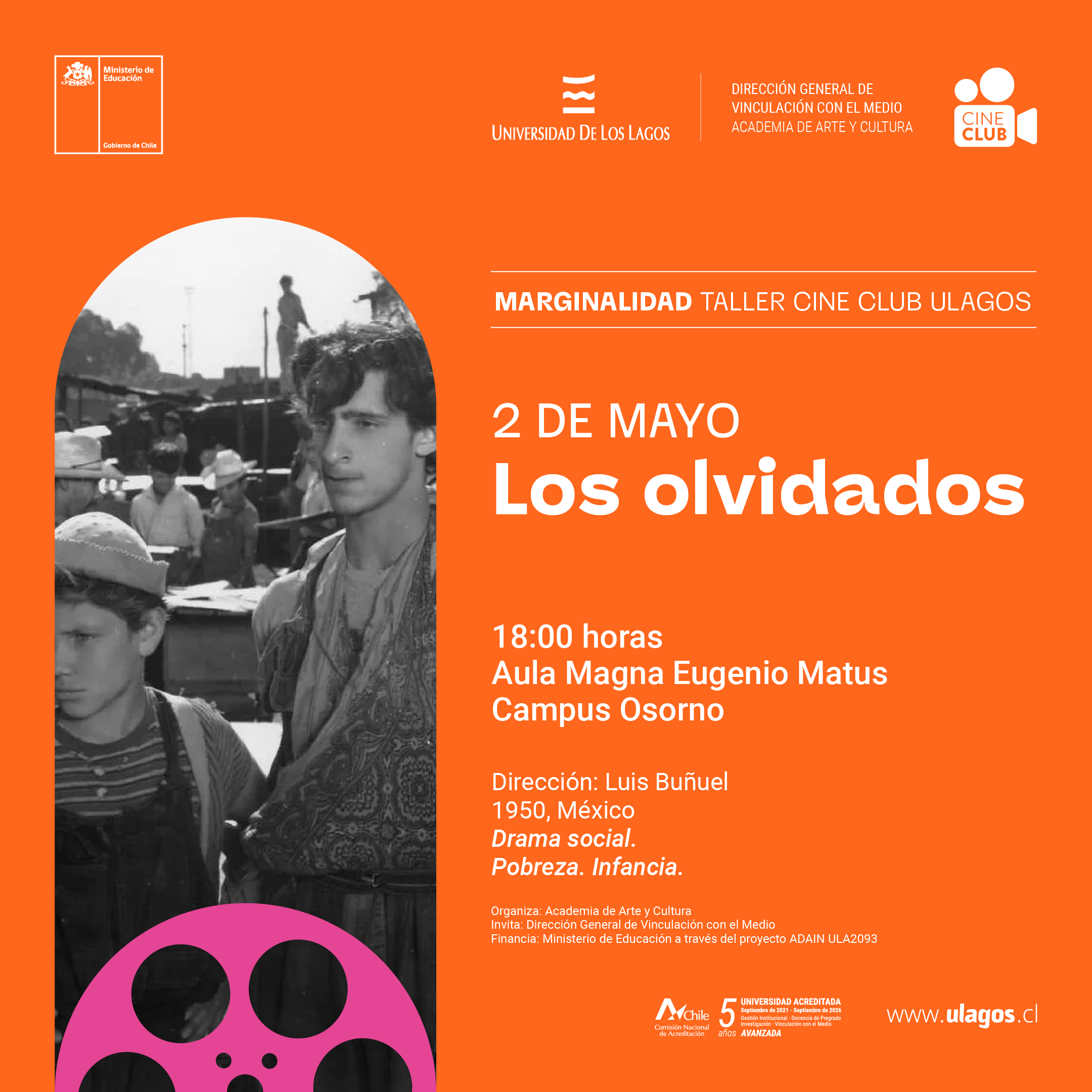 Una historia de Luis Buñuel, acerca de la pobreza y el crimen juvenil en los suburbios de la Ciudad de México. Esta es la invitación para participar en el visionado de este jueves 2 de mayo en el Cine Club ULagos, como parte del ciclo Marginalidad.