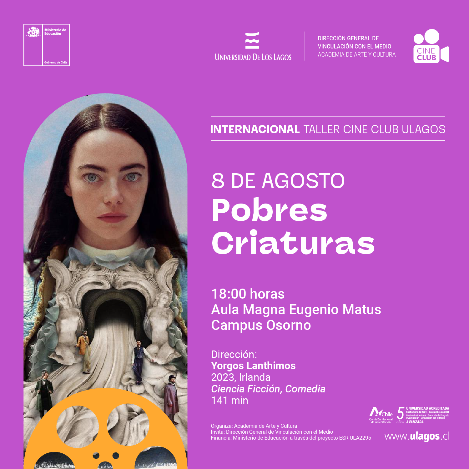 De no mediar una nueva emergencia climática, este jueves iniciamos el segundo semestre en el Cine Club ULagos con el ciclo de Cine Internacional, en esta oportunidad con la última y elogiada entrega del director Yorgos Lanthimos, y la destacadísima actuación de Emma Stone.