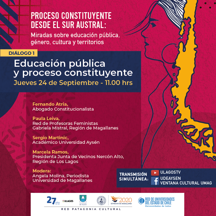 La Red Patagonia Cultural que reúne a las universidades de Los Lagos, Aysén y Magallanes, invita a la comunidad a participar en el Ciclo de Diálogos Ciudadanos “Proceso Constituyente desde el Sur Austral” con la participación del abogado Fernando Atria y destacados representantes de la sociedad civil que aportarán sus miradas en temas como Educación Pública, Género, Cultura y Territorios.