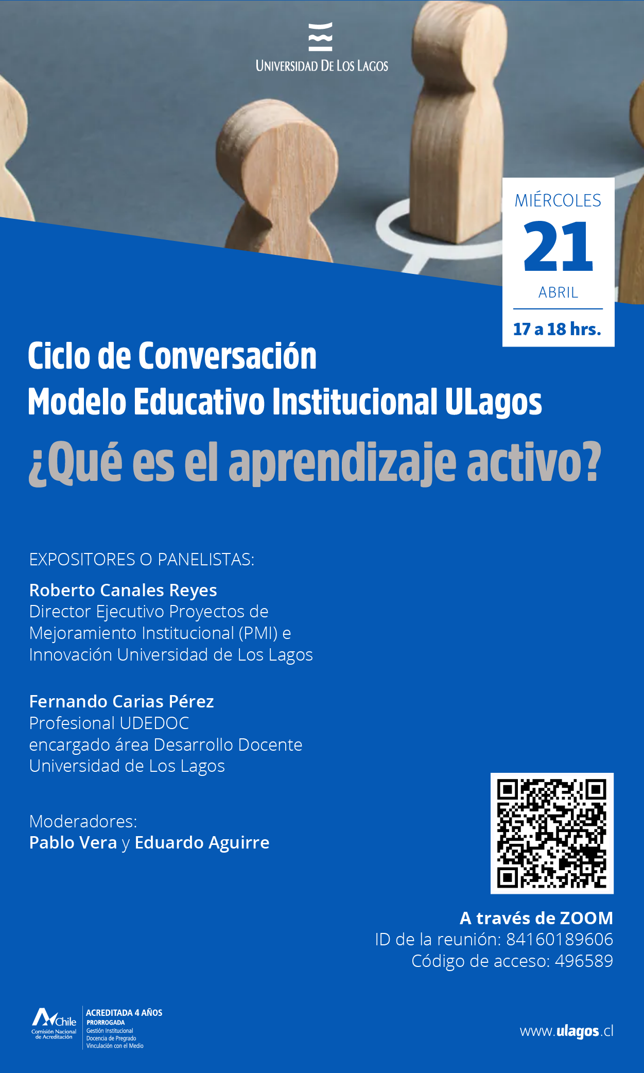 La Unidad de Desarrollo Docente y Curricular, UDEDOC, invita a toda la comunidad ULagos, al segundo ciclo de conversación del Modelo Educativo Institucional ULagos, MEI. ¿Qué es el aprendizaje activo?, que se realizará el miércoles 21 de abril, a las 17:00 horas.