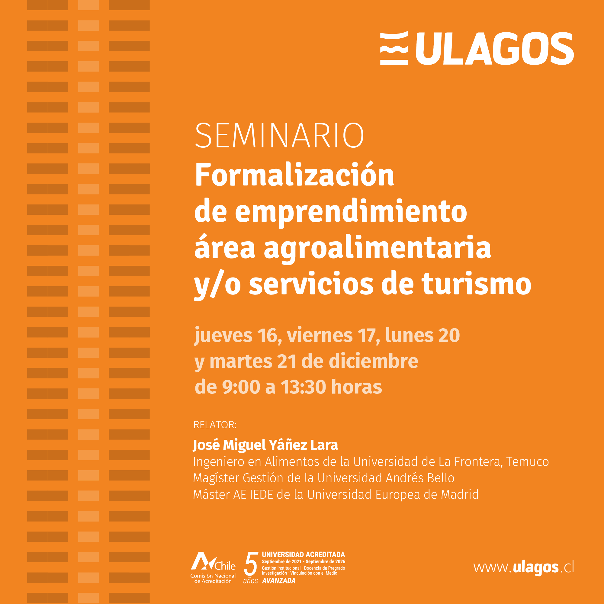 Seminario: Formalización de emprendimiento área agroalimentaria y/o servicio de turismo