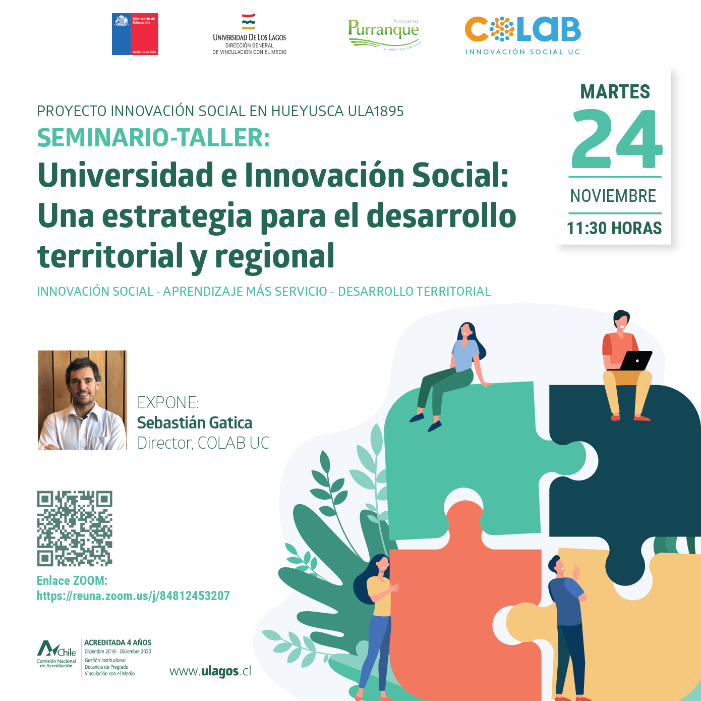 Universidad e innovación social: Una estrategia para el desarrollo territorial y regional, es el seminario-taller, organizado por la Dirección de Vinculación con el Medio, que tiene el objetivo de Promover la Innovación Social en comunidades vulnerables.
